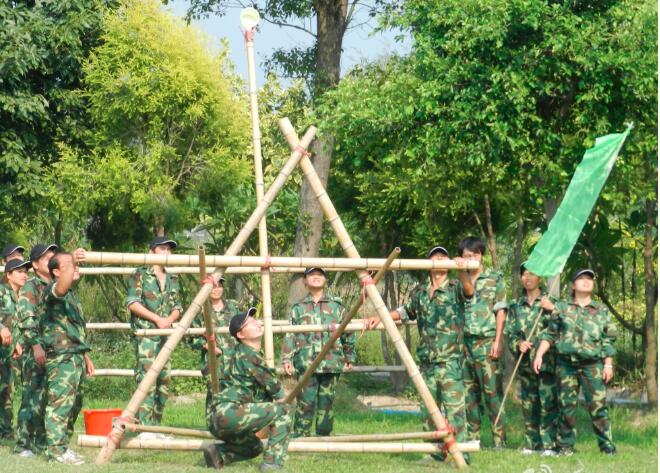 拓展項目組成),獲得資源(竹子九長一短,九根長繩。一把大勺,若幹個氣球水彈),然後在一個固定的戰場利用資源架起一尊古羅馬炮架來發射水彈攻擊别的團隊,得分多者爲勝。
